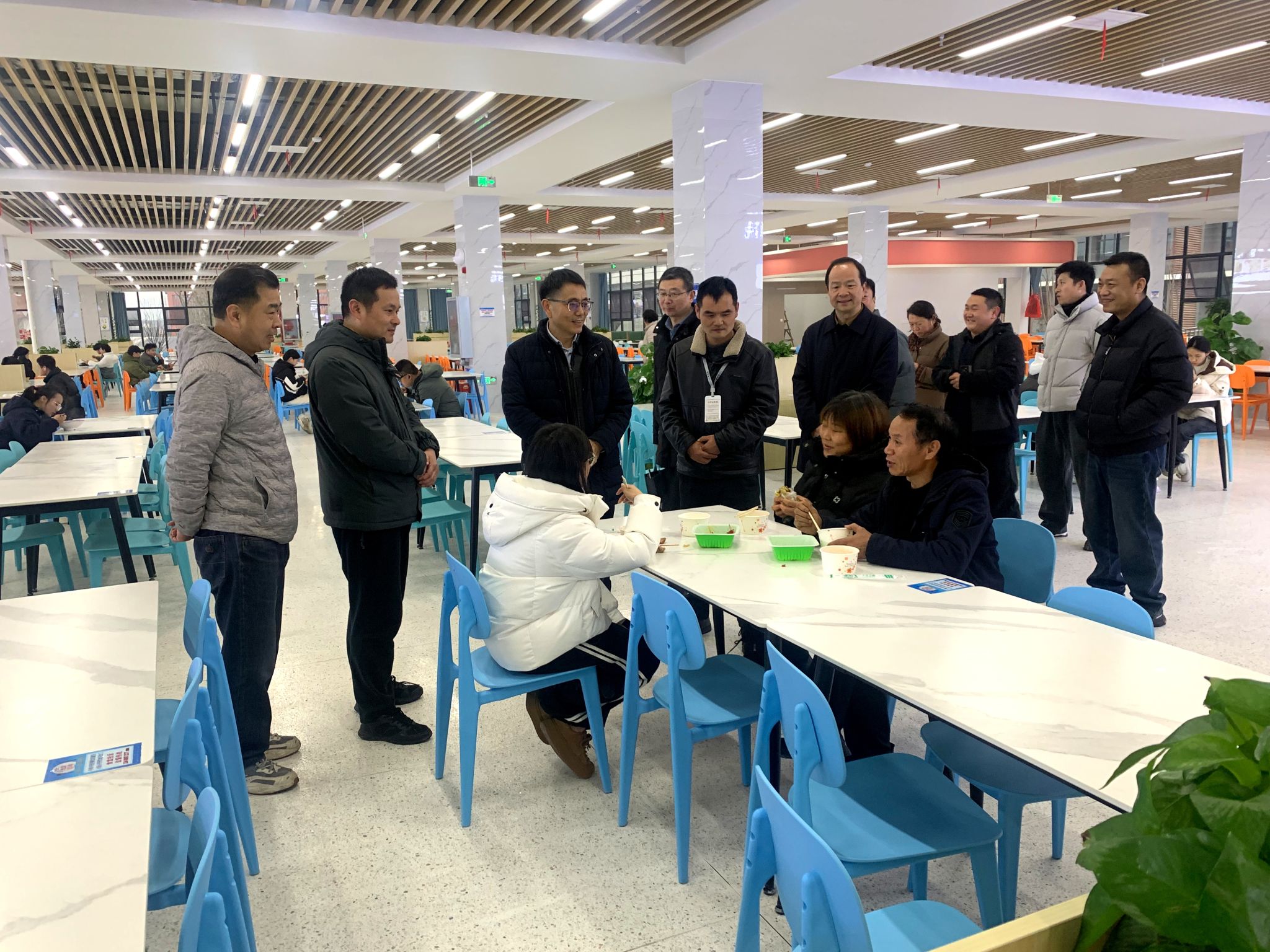 吴超仲与食堂就餐学生交流