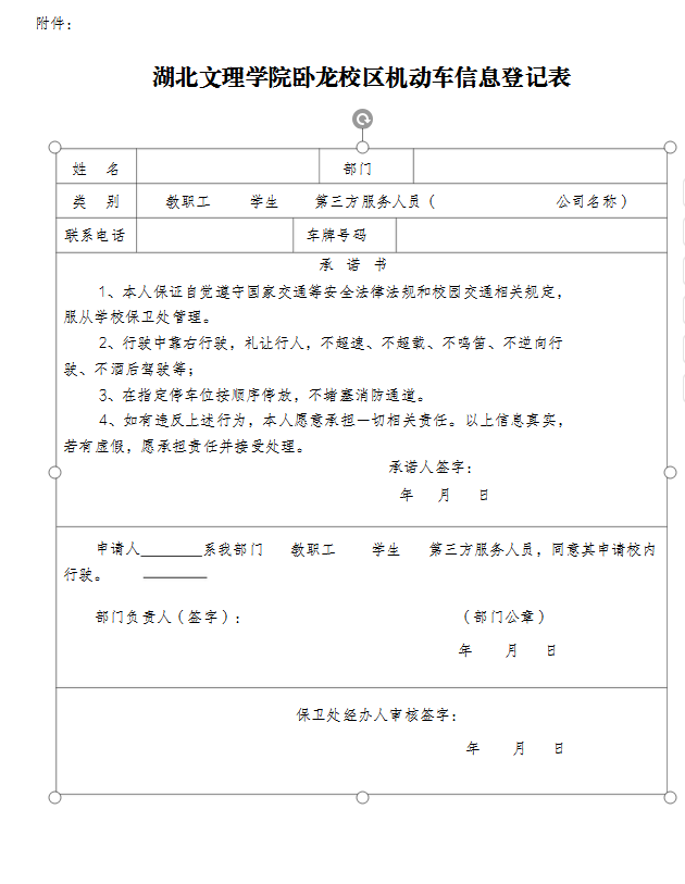 附件:《湖北文理学院卧龙校区机动车信息登记表》