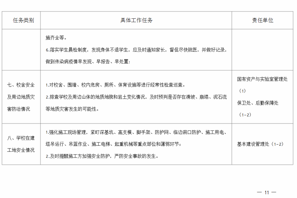 责任单位:后勤保障处、基本建设管理处、保卫处