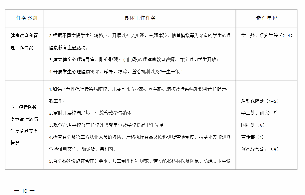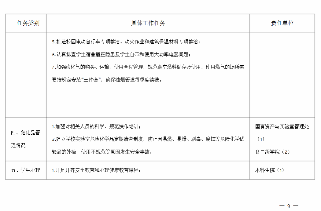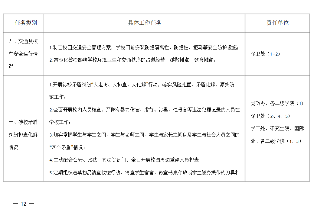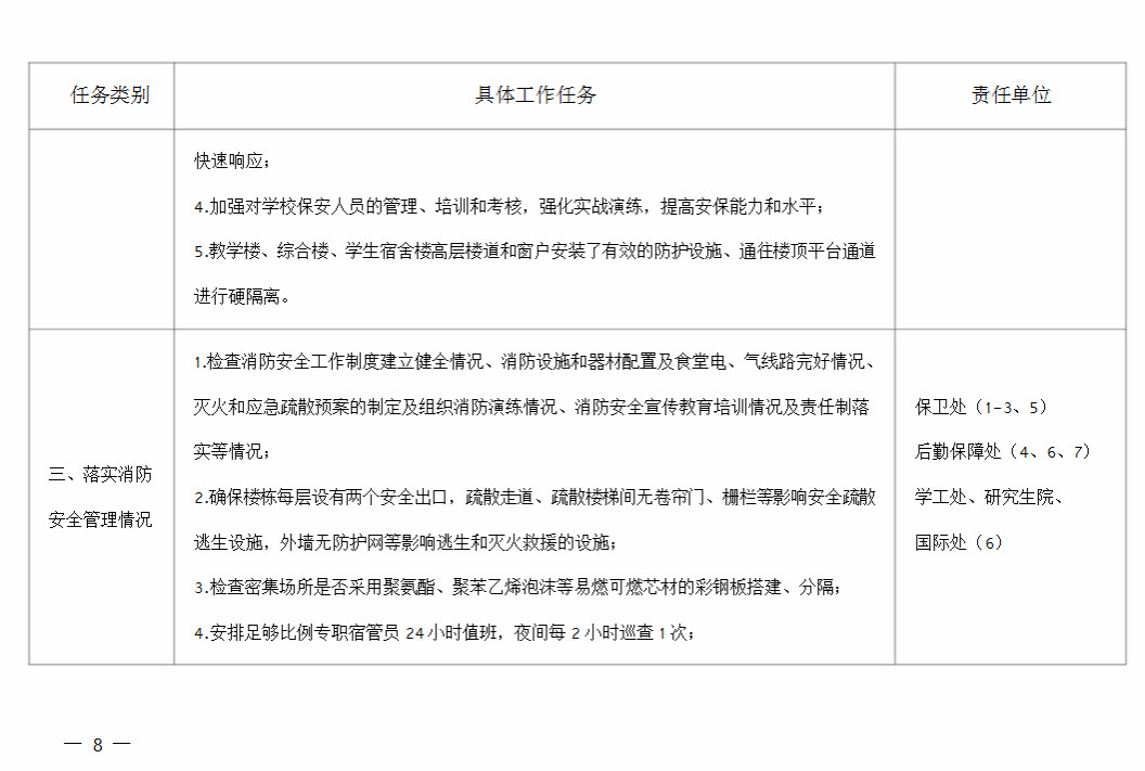 责任单位:保卫处、后勤保障处、学工处、研究生院、国际处